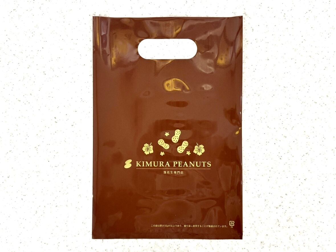木村ピーナッツのロゴが入りました、小サイズのオリジナル・ビニール製手提げ袋になります。