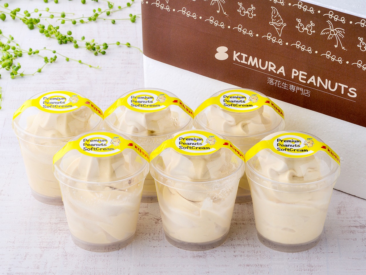 「ピーナッツハード 6個セット」は、当店看板商品のピーナッツソフトクリームを固めた贅沢な一品です。濃厚なピーナッツの風味が口の中に広がる、まるでピーナッツバターのような味わいが魅力です。
