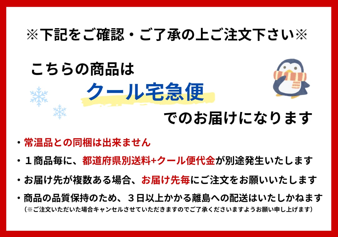 ・下記の「クール宅急便送料」欄から、商品をお届けする地域を選択した上でご注文いただきますようお願いいたします。